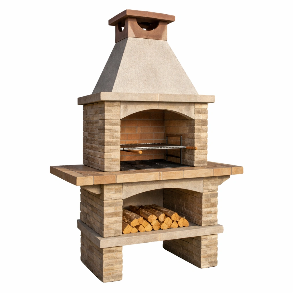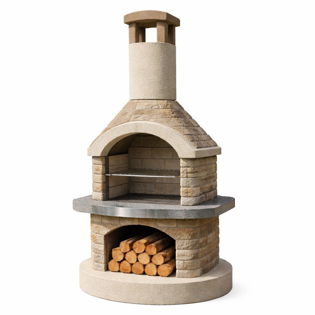 Barbacoa de piedra caliza con chimenea y almacenamiento