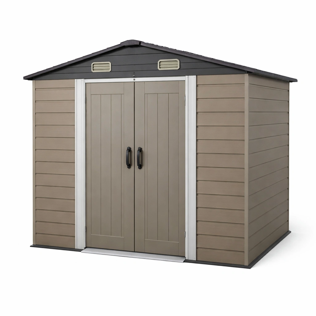 Cobertizo de jardín de polipropileno con refuerzo metálico beige y negro