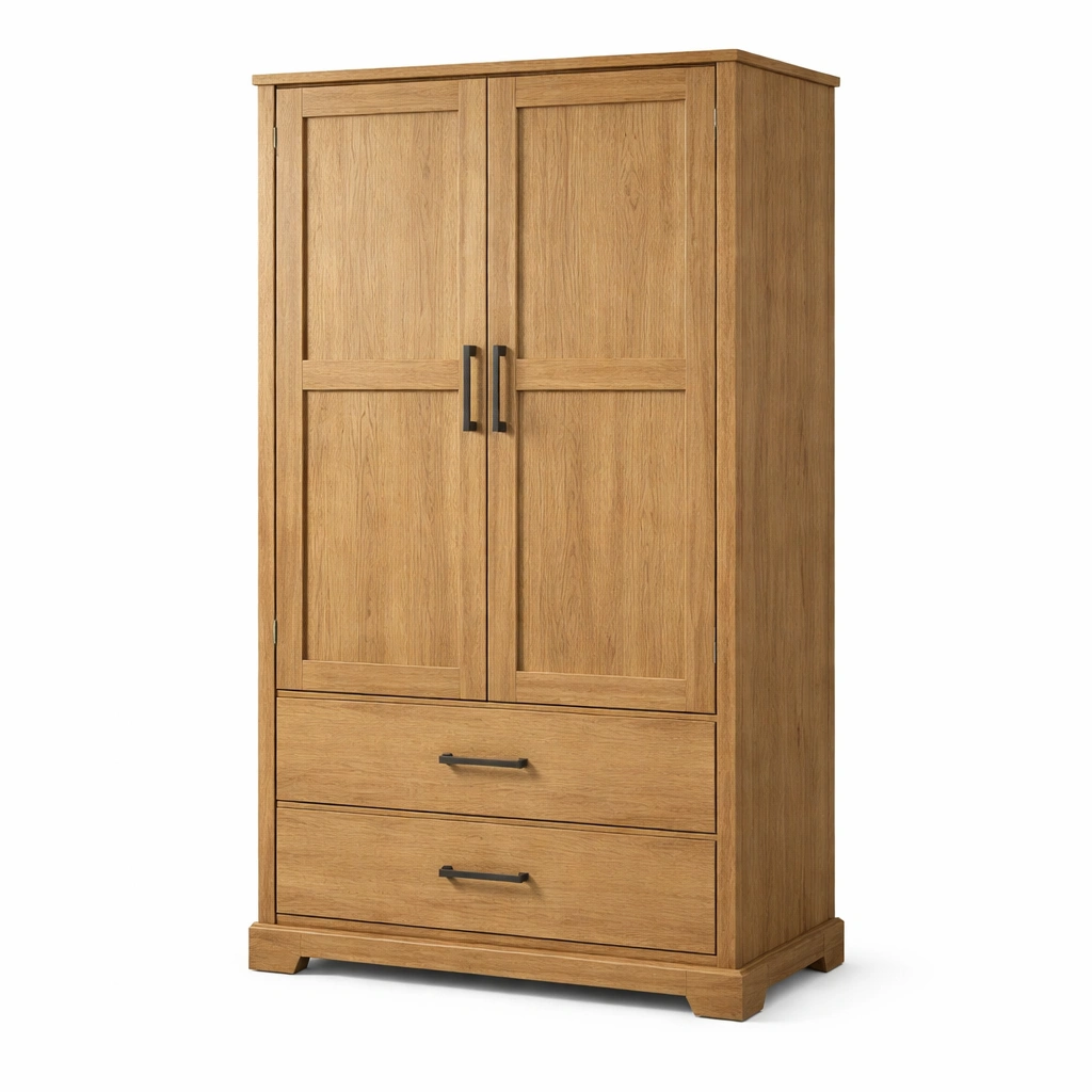 Armario de madera de roble con dos puertas y dos cajones 180x100x50 cm